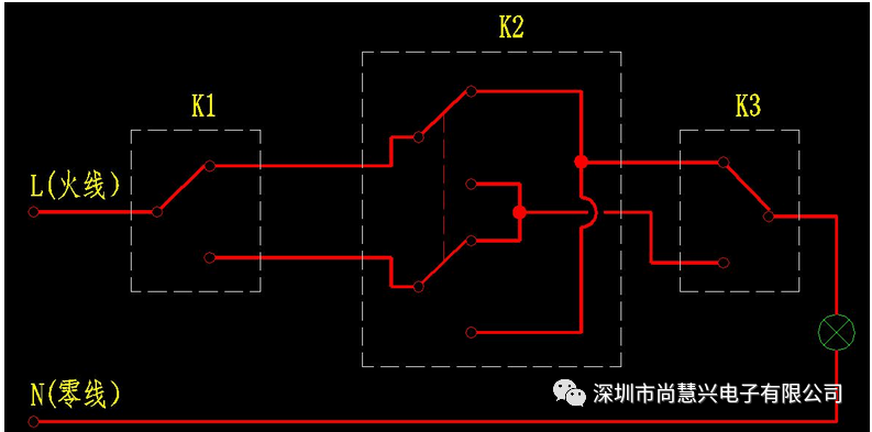 以上三張圖為一個燈實現雙控和多控的原理圖
