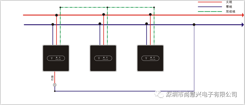 用觸摸開關實現雙控和多控時只需要用網線把開關一對一的連接即可,用機械開關實現雙控時要用兩條強電線連接,當實現三控時除了要用4根強電線把開關連接,還要進行跳線(因為跳線太麻煩,一般電工都不熟悉)