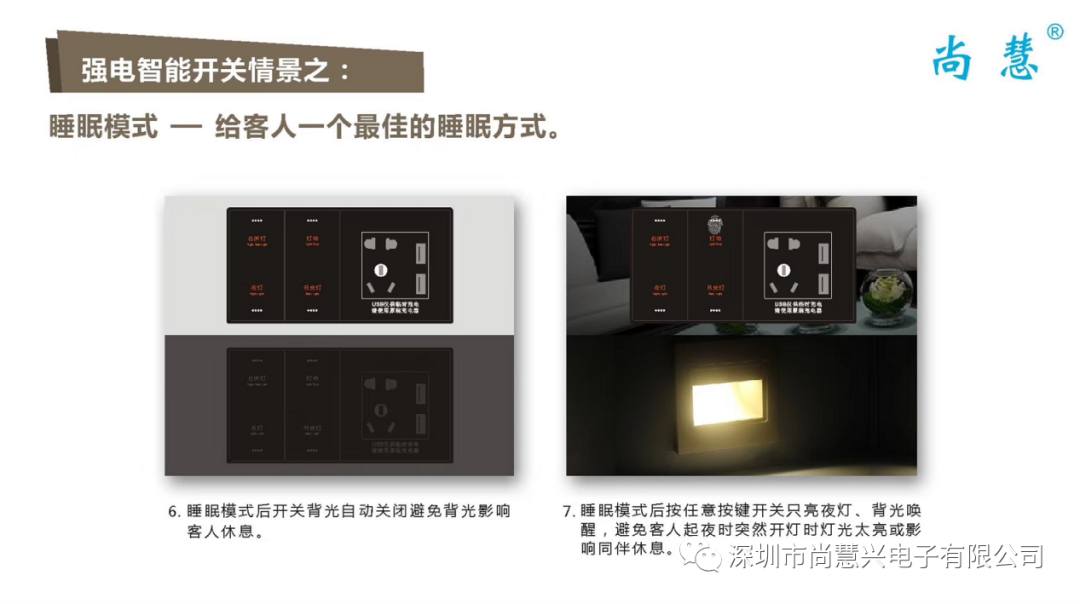6.睡眠模式后開關背光自動關閉,避免背光影響客人休息;