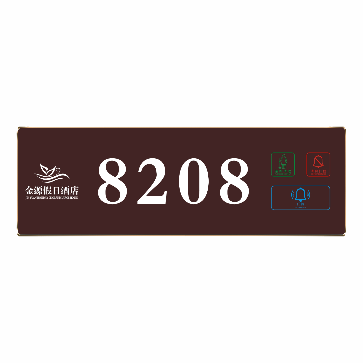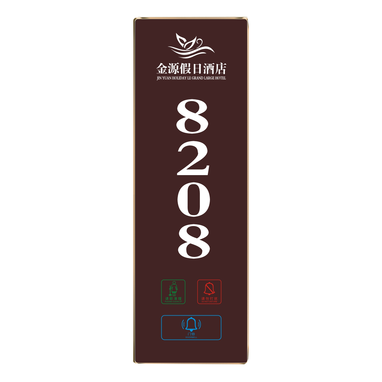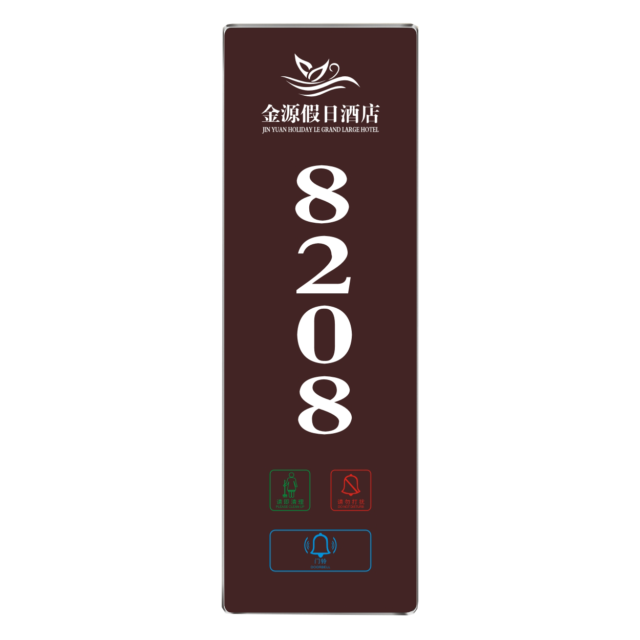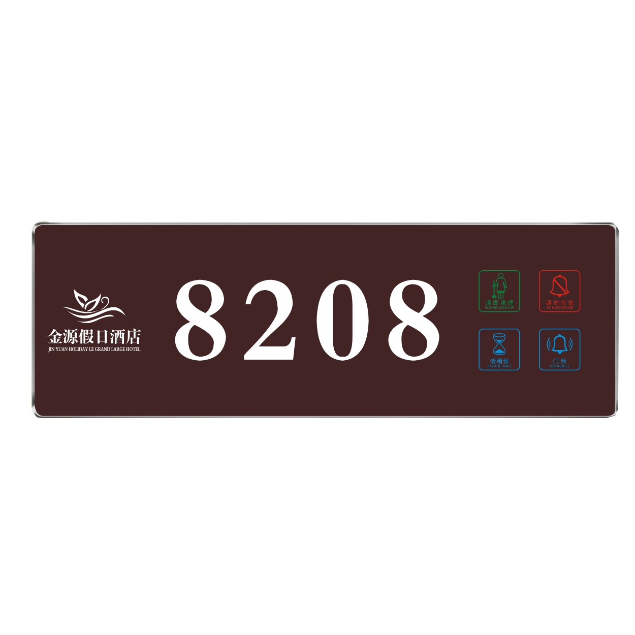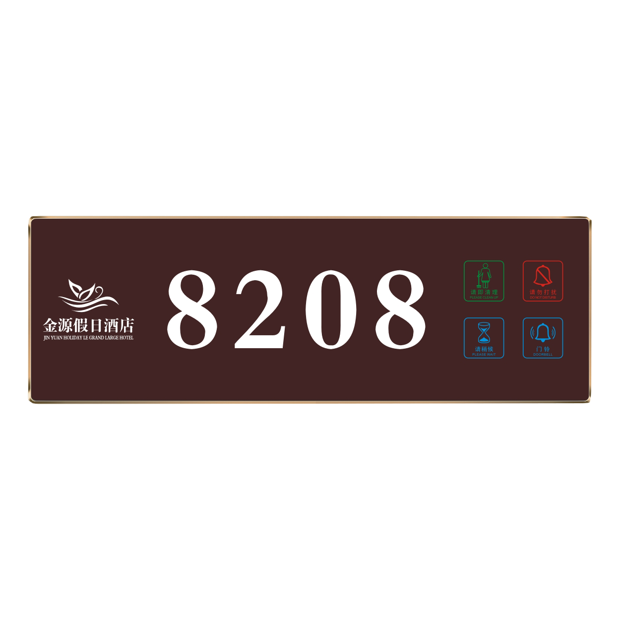 2、客人按下房間內的"請勿打擾”開關,液晶屏的"請勿打擾”圖案背光亮起,門外顯示屏中提示請不要打擾,此時門鈴按鍵不起作用。