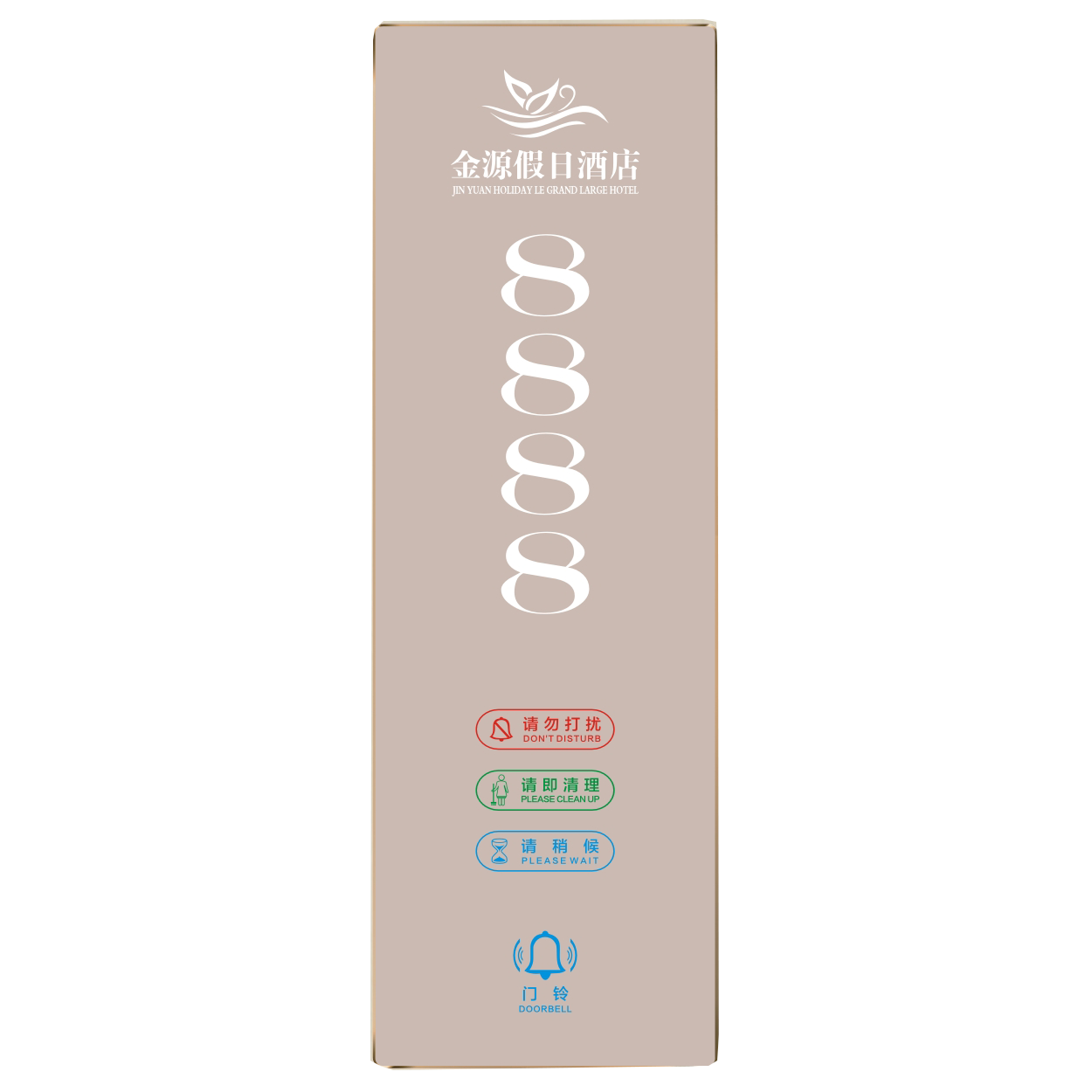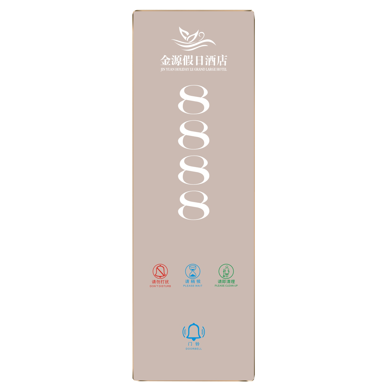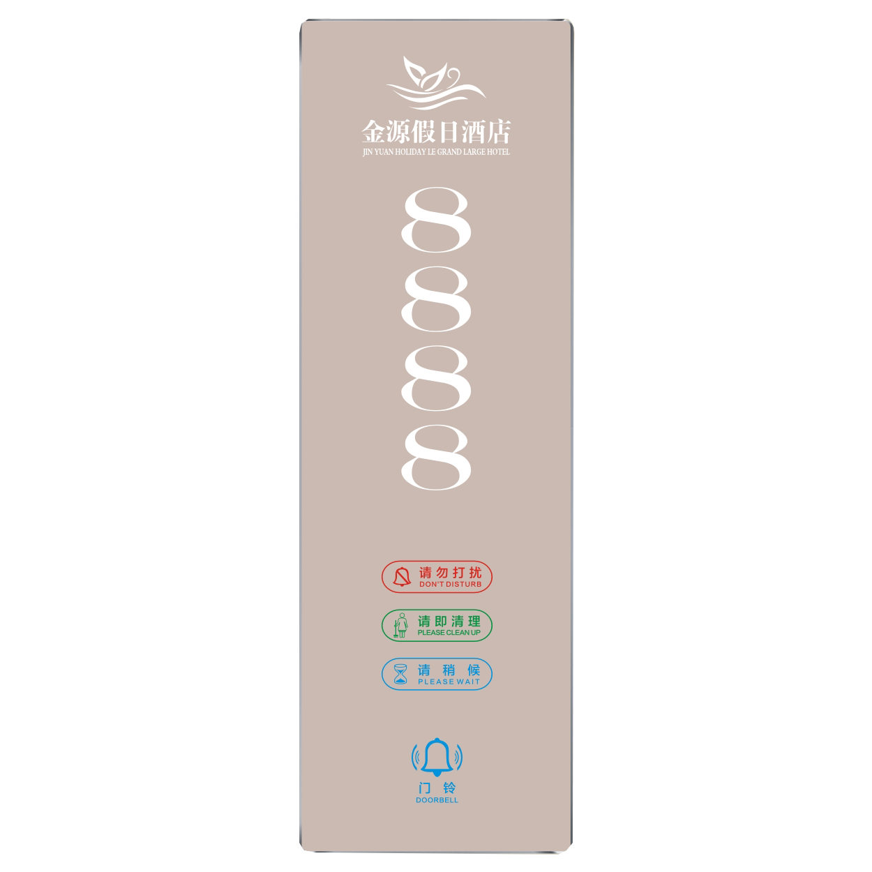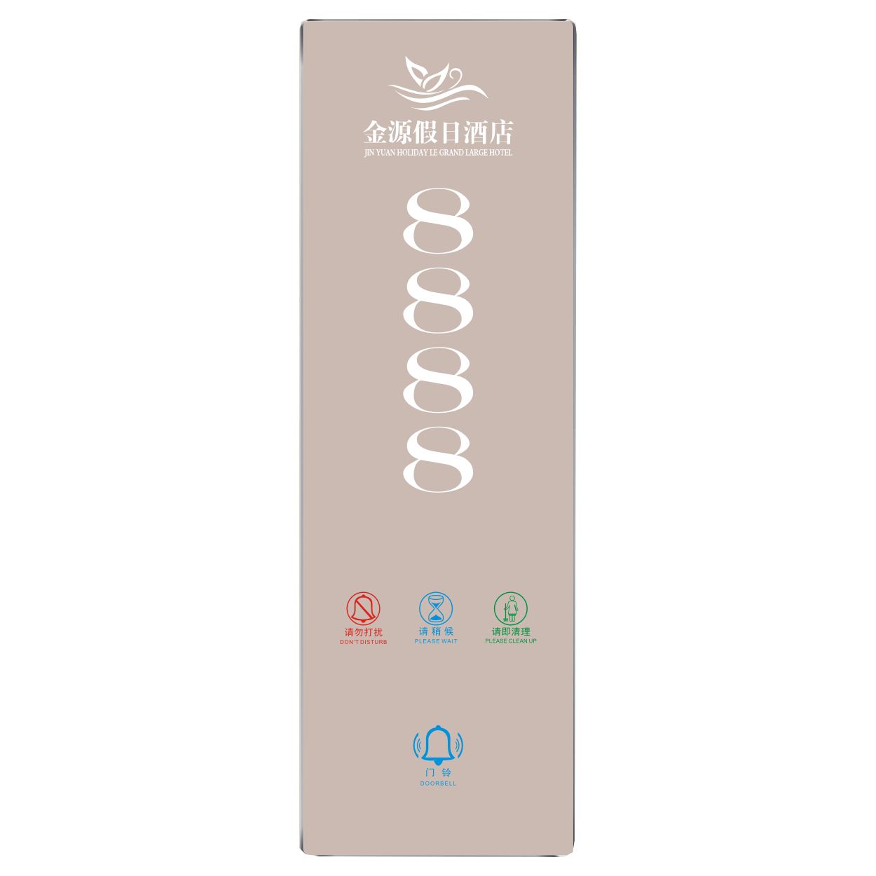 2、客人按下房間內的"請勿打擾”開關,液晶屏的"請勿打擾”圖案背光亮起,門外顯示屏中提示請不要打擾,此時門鈴按鍵不起作用。